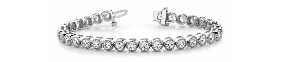 Vintage Inspired 14K White-Yellow Gold Round Diamond Channel Set Engagement Ring