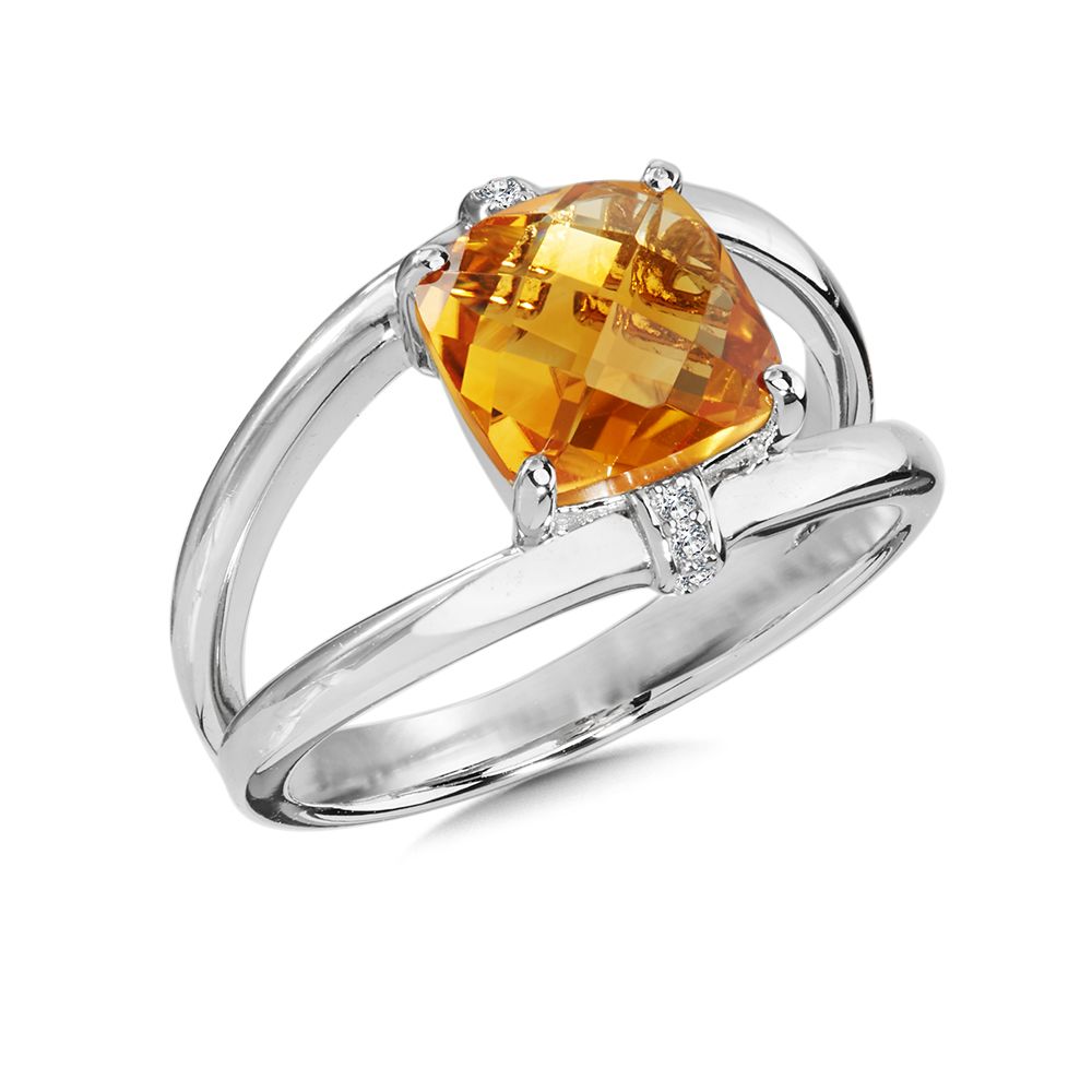CITRINE & DIAMOND RING IN STERLING SILVER