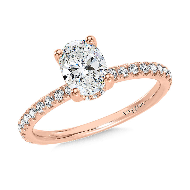 Oval-Cut Straight Hidden Halo Diamond Engagement Ring