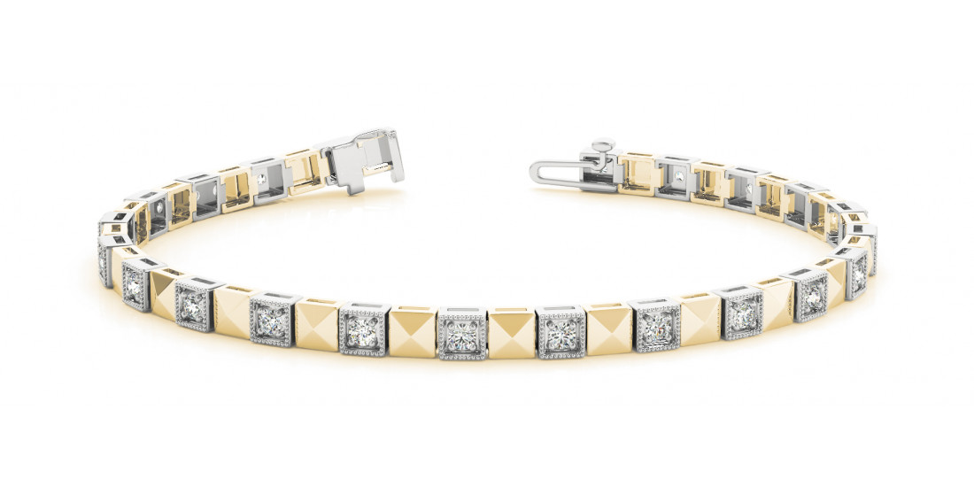 14K Yellow Gold Bujukan Bead Cuff Bracelet with Pavé Diamond Connectors