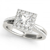 Unique 14K White Gold Halo Diamond Engagement Ring