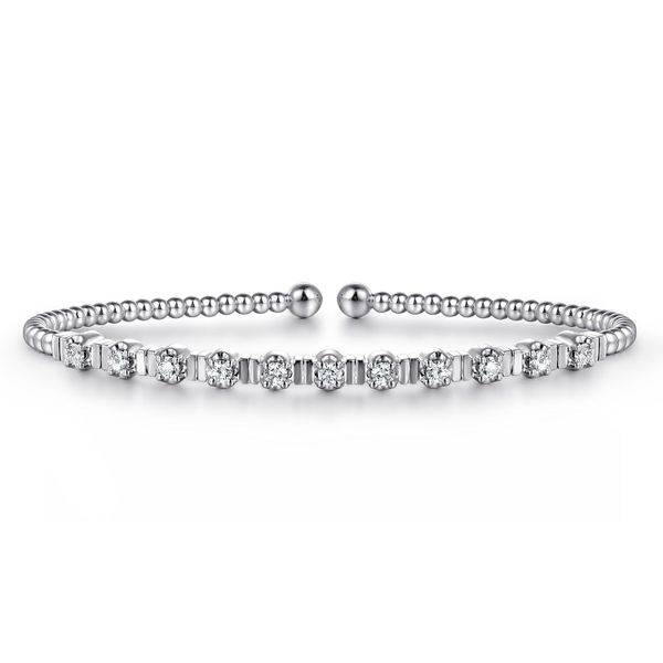 14K White Gold Bujukan Bead Cuff Bracelet with Diamond Stations J.A. Jewelers & Company, Inc. FARMINGTON, NM