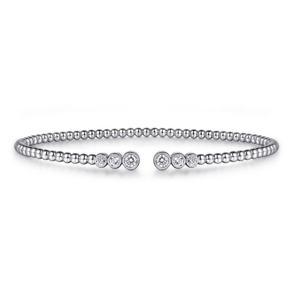 14K White Gold Bujukan Bead Split Cuff Bracelet with Bezel Set Diamonds J.A. Jewelers & Company, Inc. FARMINGTON, NM