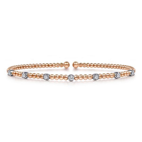 14K White-Rose Gold Bujukan Diamond Stations Bangle Image 2 J.A. Jewelers & Company, Inc. FARMINGTON, NM