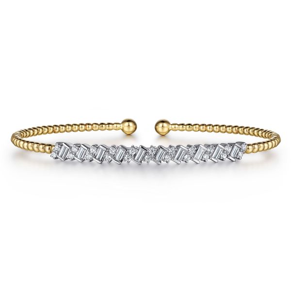 14K White-Yellow Gold Bujukan Baguette Diamond Cuff Bracelet Image 2 J.A. Jewelers & Company, Inc. FARMINGTON, NM