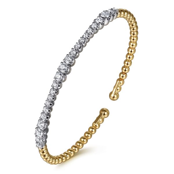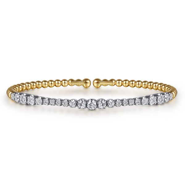 14K White & Yellow Gold Bujukan Beads and Graduating Diamond Split Bangle Bracelet J.A. Jewelers & Company, Inc. FARMINGTON, NM
