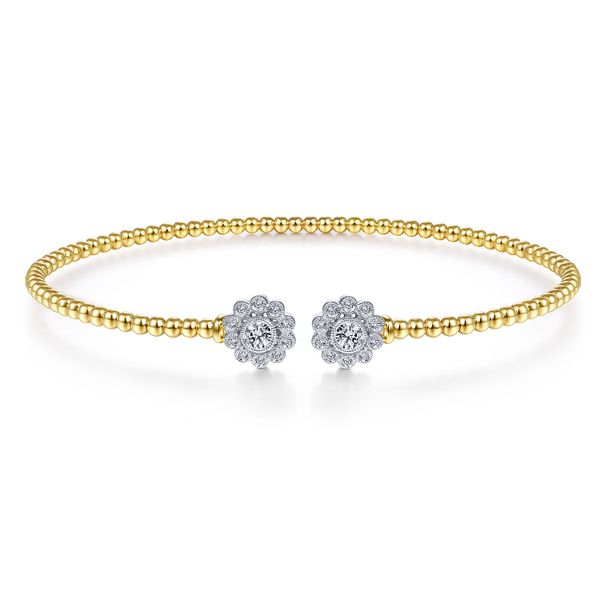 14K White&Yellow Gold Bujukan Split Cuff Bracelet with Diamond Flowers J.A. Jewelers & Company, Inc. FARMINGTON, NM
