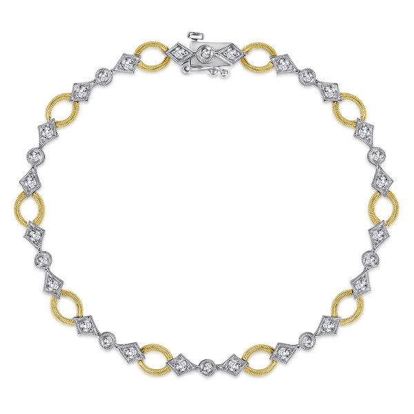 14K Yellow and White Gold Link and Bow Diamond Tennis Bracelet J.A. Jewelers & Company, Inc. FARMINGTON, NM