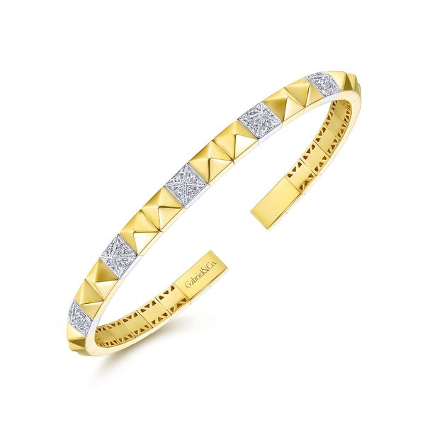 14K Yellow and White Gold Pyramid Bangle with Pave Diamond Stations J.A. Jewelers & Company, Inc. FARMINGTON, NM