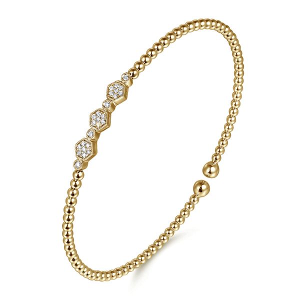 14K Yellow Gold Bujukan Bead and Hexagon Cluster Diamond Bangle Image 2 J.A. Jewelers & Company, Inc. FARMINGTON, NM