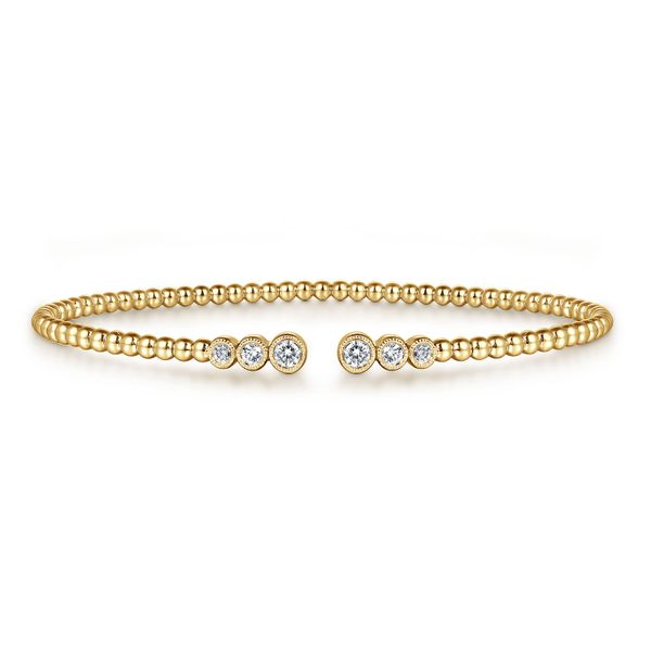 14K Yellow Gold Bujukan Bead Split Cuff Bracelet with Bezel Set Diamonds J.A. Jewelers & Company, Inc. FARMINGTON, NM