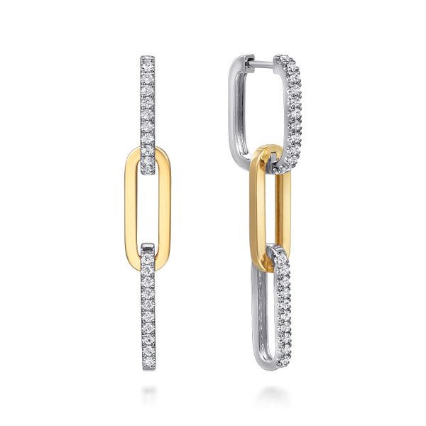 14K White and Yellow Gold Diamond And Hollow Link Chain Earrings J.A. Jewelers & Company, Inc. FARMINGTON, NM