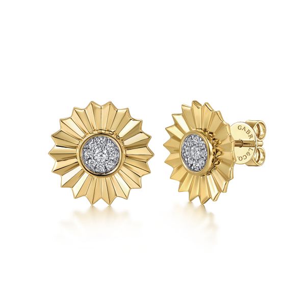 14K White and Yellow Gold Diamond Cut Stud Earrings J.A. Jewelers & Company, Inc. FARMINGTON, NM