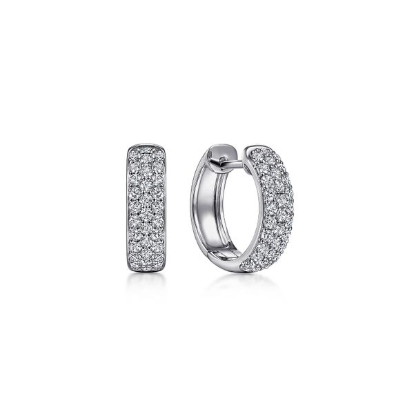 14K White Gold 15mm Diamond Huggie Earrings J.A. Jewelers & Company, Inc. FARMINGTON, NM
