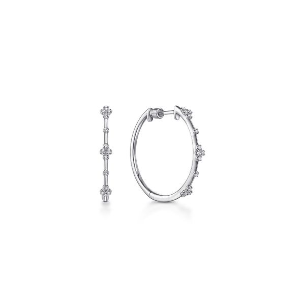 14K White Gold 20mm Round Diamond Classic Hoop Earrings Image 2 J.A. Jewelers & Company, Inc. FARMINGTON, NM