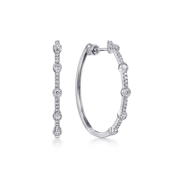 14K White Gold 30mm Classic Diamond Hoop Earrings J.A. Jewelers & Company, Inc. FARMINGTON, NM