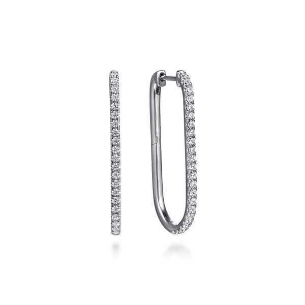 14K White Gold Diamond Classic Elongated Oval Hoop Earrings Image 2 J.A. Jewelers & Company, Inc. FARMINGTON, NM