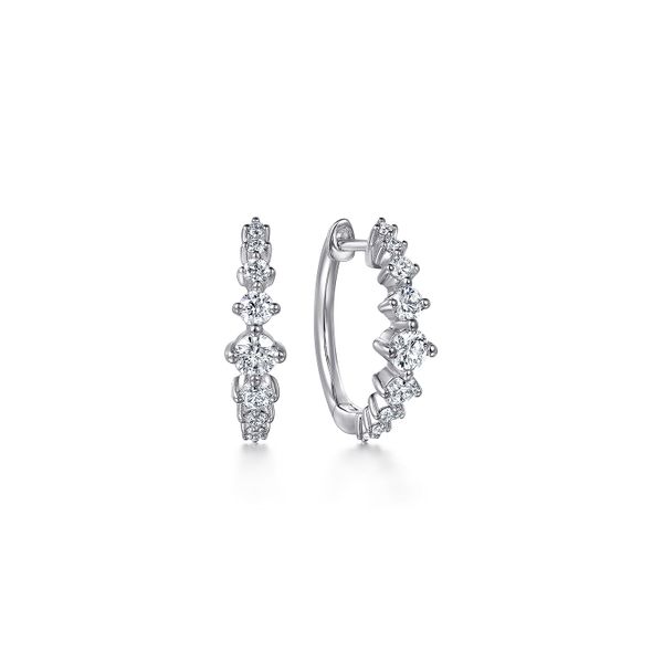 14K White Gold Graduating Diamond Huggie Earrings J.A. Jewelers & Company, Inc. FARMINGTON, NM