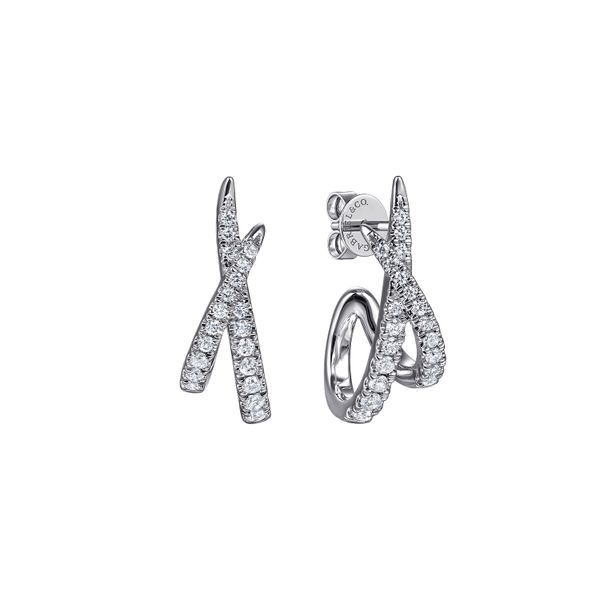 14K White Gold Graduating Diamond Spike J Hoop Stud Earrings J.A. Jewelers & Company, Inc. FARMINGTON, NM