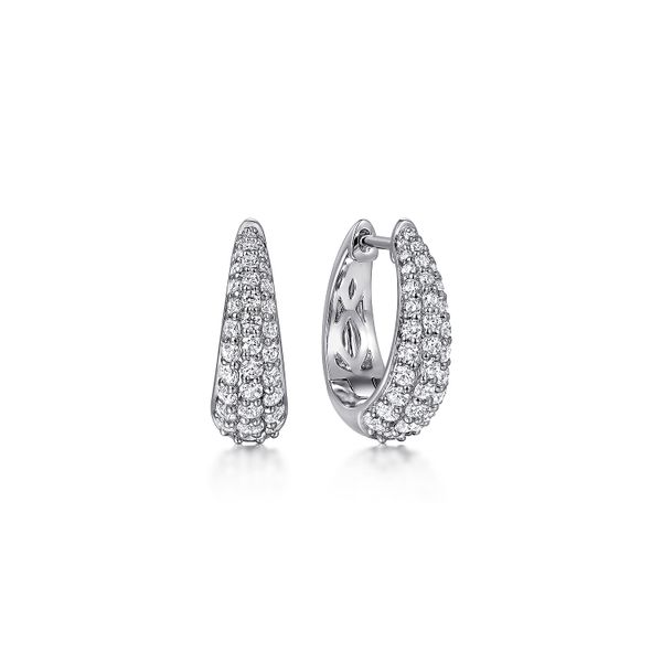 14K White Gold Pave Diamond Oval Huggie Earrings J.A. Jewelers & Company, Inc. FARMINGTON, NM