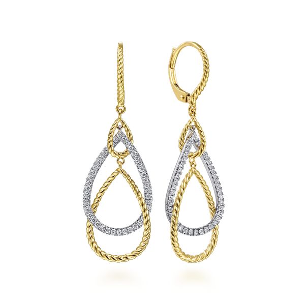 14K White-Yellow Gold Layered Teardrop Diamond Earrings