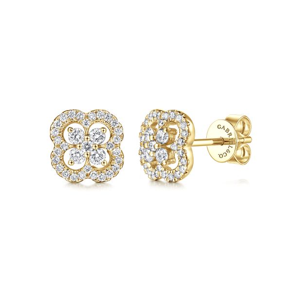 14K Yellow Gold Cutout Clover Diamond Stud Earrings J.A. Jewelers & Company, Inc. FARMINGTON, NM