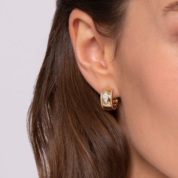 14K Yellow Gold Diamond Bujukan 15mm Huggie Earrings Image 2 J.A. Jewelers & Company, Inc. FARMINGTON, NM