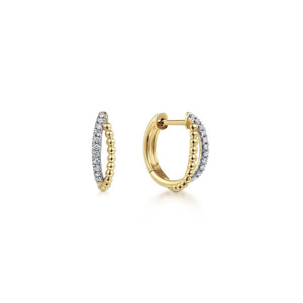 14K Yellow Gold Twisted Pave 10mm Diamond Huggie Earrings Image 2 J.A. Jewelers & Company, Inc. FARMINGTON, NM