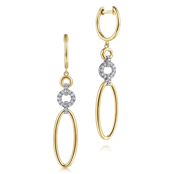 14K Yellow-White Gold Long Multi Link Diamond Huggie Drop Earrings J.A. Jewelers & Company, Inc. FARMINGTON, NM