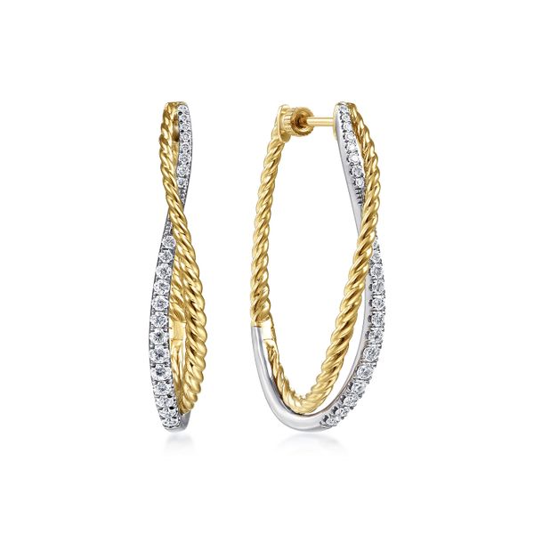 14K Yellow-White Gold Twisted 35mm Classic Diamond Hoop Earrings J.A. Jewelers & Company, Inc. FARMINGTON, NM