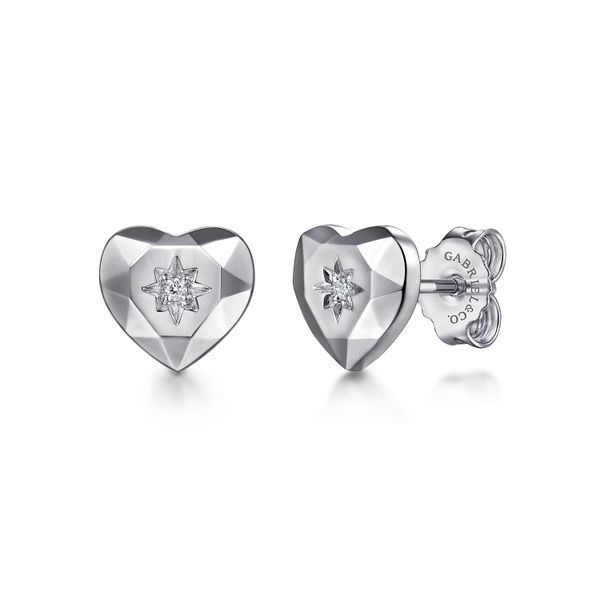 925 Sterling Silver Heart Diamond Cut Stud Earrings J.A. Jewelers & Company, Inc. FARMINGTON, NM