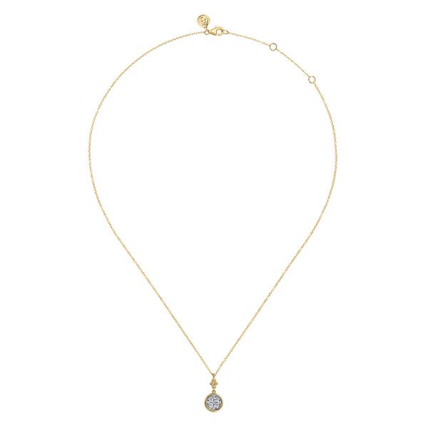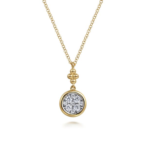 14K White and Yellow Gold Diamond Cluster Bujukan Drop Pendant Necklace J.A. Jewelers & Company, Inc. FARMINGTON, NM