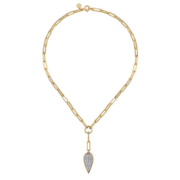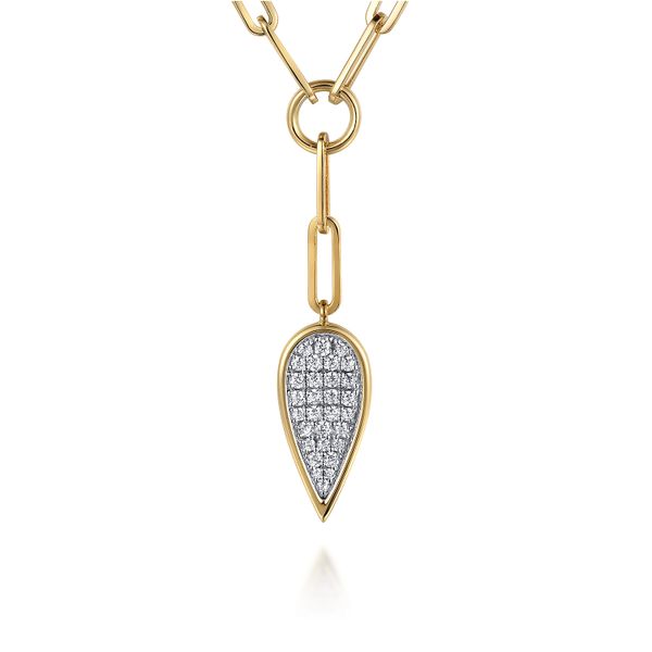 14K White and Yellow Gold Diamond Drop And Hollow Link Chain Y Knots Necklace J.A. Jewelers & Company, Inc. FARMINGTON, NM