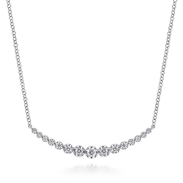14K White Gold Diamond Curved Bar Necklace J.A. Jewelers & Company, Inc. FARMINGTON, NM