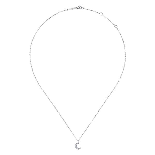 14K White Gold Diamond Pave Crescent Moon Pendant Necklace Image 2 J.A. Jewelers & Company, Inc. FARMINGTON, NM