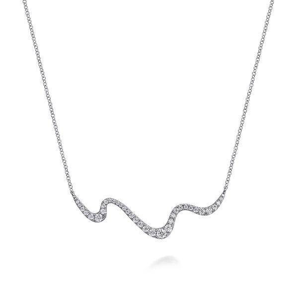 14K White Gold Graduating Diamond Wave Bar Necklace J.A. Jewelers & Company, Inc. FARMINGTON, NM