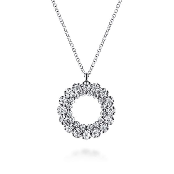 14K White Gold Multi Diamond Circle Pendant Necklace Image 2 J.A. Jewelers & Company, Inc. FARMINGTON, NM