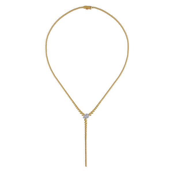 14K White & Yellow Gold Bujukan Beads and Diamond Y Necklace Image 2 J.A. Jewelers & Company, Inc. FARMINGTON, NM