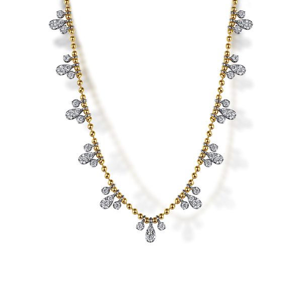 14K White & Yellow Gold Bujukan Diamond Droplet Necklace Image 2 J.A. Jewelers & Company, Inc. FARMINGTON, NM