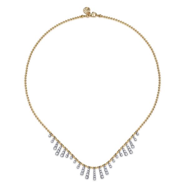 14K White & Yellow Gold Graduating Diamond Droplet Necklace Image 2 J.A. Jewelers & Company, Inc. FARMINGTON, NM