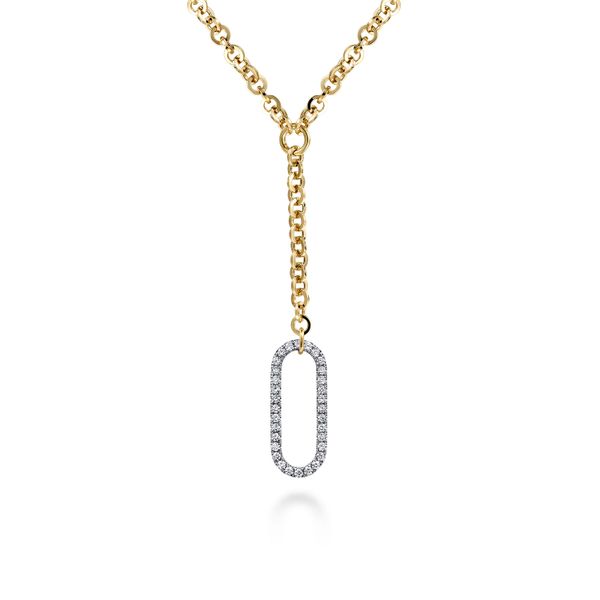 14K White & Yellow Gold Hollow Tube Link Diamond Y Necklace Image 2 J.A. Jewelers & Company, Inc. FARMINGTON, NM