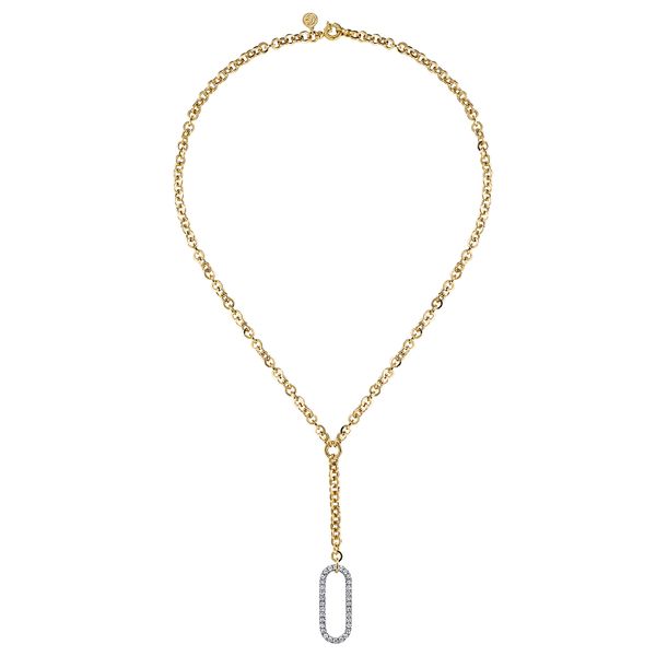 14K White & Yellow Gold Hollow Tube Link Diamond Y Necklace J.A. Jewelers & Company, Inc. FARMINGTON, NM