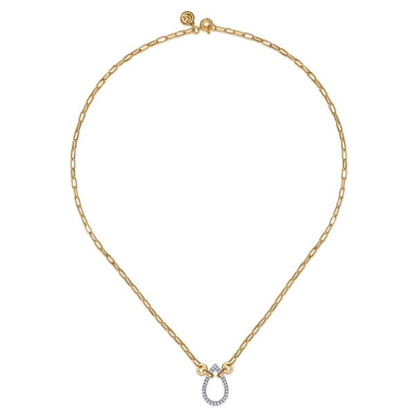 14K White & Yellow Gold Open Teardrop Diamond Hollow Paperclip Chain Necklace Image 2 J.A. Jewelers & Company, Inc. FARMINGTON, NM