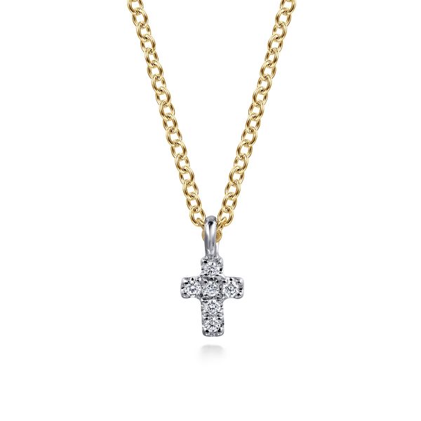 14K Yellow and White Gold Diamond Cross Pendant Necklace J.A. Jewelers & Company, Inc. FARMINGTON, NM