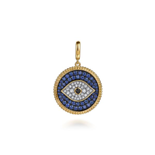 14K Yellow Gold Bujukan Diamond and Multi Stones Evil Eye Medallion Pendant With Detachable Bail J.A. Jewelers & Company, Inc. FARMINGTON, NM