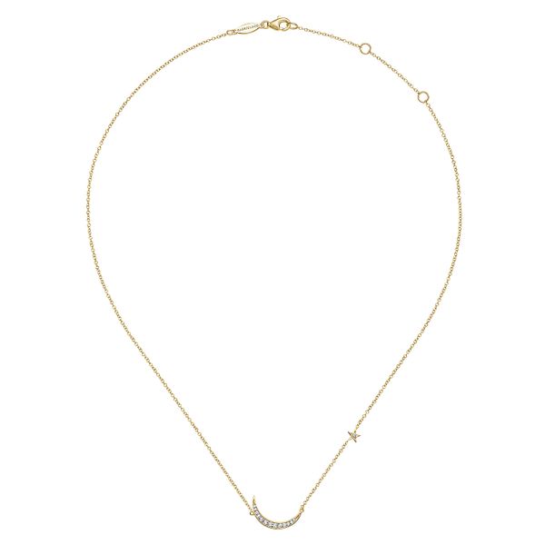 14K Yellow Gold Crescent Moon Diamond Pendant Necklace Image 2 J.A. Jewelers & Company, Inc. FARMINGTON, NM