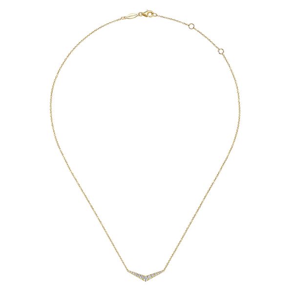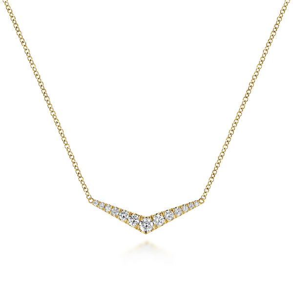 14K Yellow Gold Curved Diamond Bar Necklace Image 2 J.A. Jewelers & Company, Inc. FARMINGTON, NM