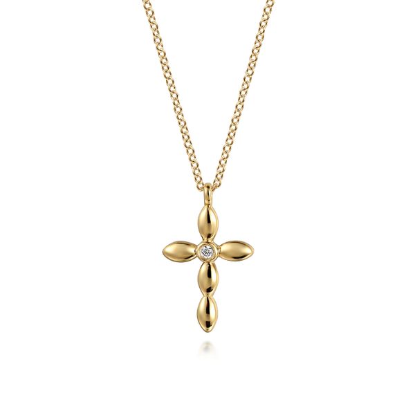 14K Yellow Gold Diamond Cross Necklace