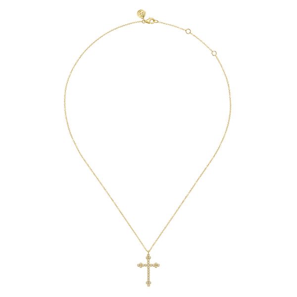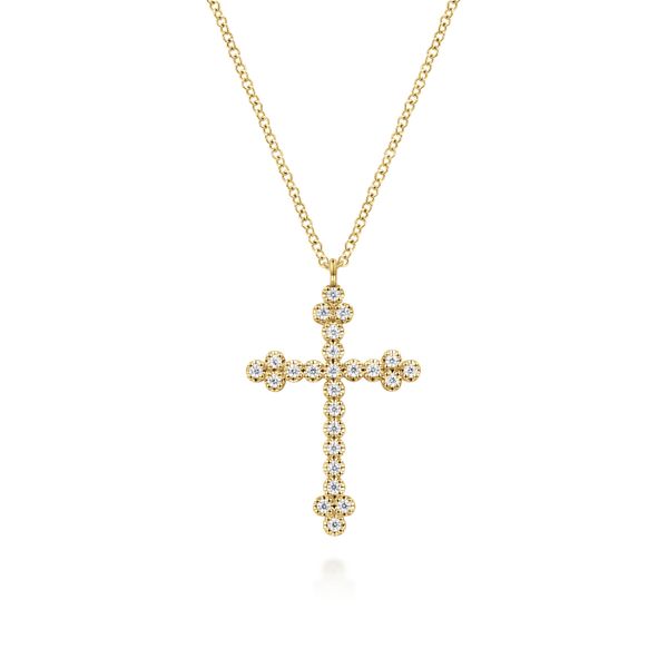 14K Yellow Gold Diamond Cross Pendant Necklace Image 2 J.A. Jewelers & Company, Inc. FARMINGTON, NM