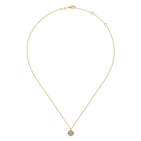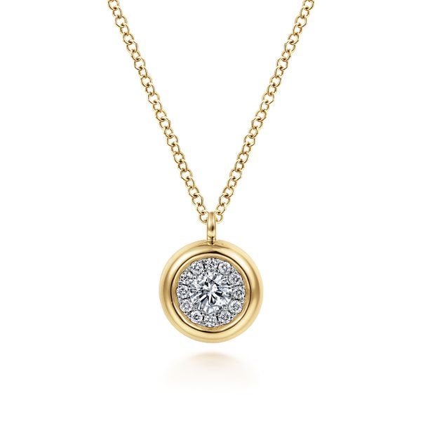 14K Yellow Gold Diamond Halo Pendant Necklace Image 2 J.A. Jewelers & Company, Inc. FARMINGTON, NM